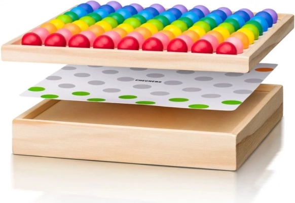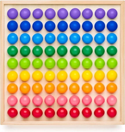 - Kvalitetsmateriale: solid træplade og holdbare kugler i regnbuens farver.