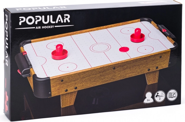 Kompakt bord-airhockey i trælook, der giver hurtig og sjov action for 2 spillere. Den indbyggede ventilator sikrer jævn glidning af pucken, filtbundene på strikerne sørger for stille og let bevægelse, og manuelle tællere gør det nemt at følge scoren. Ideel til familier, børneværelser og weekendturneringer.
