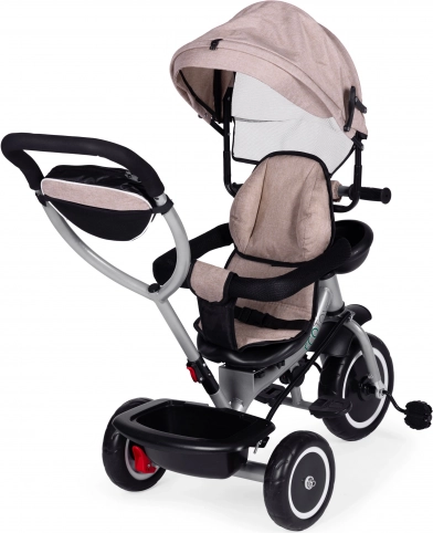 Børne 2-i-1 trehjulet cykel med roterende sæde og foldbar kaleche, beige ECOTOYS