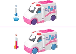 Denne mini-ambulance inspireret af BARBIE-universet bringer masser af leg i et lille format. Når køretøjet åbnes, forvandles det til en lille klinik, hvor minidukken kan tage sig af patienter, sidde på det drejelige sæde og fortælle sine egne redningshistorier. Takket være de kompakte dimensioner er sættet ideelt både hjemme og på farten.