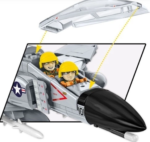 F-4 Phantom II er et supersonisk multirole-jagerfly, der tjente i det amerikanske flyvevåben fra 1960’erne. Det blev anvendt til aflytnings-, bombnings- og rekognosceringsmissioner, for eksempel under Vietnamkrigen. Modellen fremstillet af 703 COBI-byggedele replikerer flyet på hangarskibet USS Midway, som kan besøges i San Diego (USA). Takket være den licenserede udgave er modellen detaljeret efter det virkelige fly med bevægelige flaps samt aftageligt understel og bevæbning. Den åbne cockpitkabine giver plads til symbolske pilot-minifigurer. Sættet indeholder også en base til udstilling og en plade med flyets navn og skala 1:48.