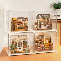 Den ideelle vitrine til miniaturedukkehuse i DG-serien (undtagen DG12). Holder scenen fri for støv og præsenterer den smukt – fra café og bageri til drivhus eller køkken.