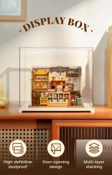 Denne kvalitetsvitrine i robust ABS-plast med afrundede kanter beskytter dine dioramaer sikkert og præsenterer dem samtidig perfekt. Den åbnbare front gør både iscenesættelse og vedligeholdelse let, så din miniaturecafé, dit bageri, drivhus eller køkken altid er klar til beundring uden støvaflejringer.