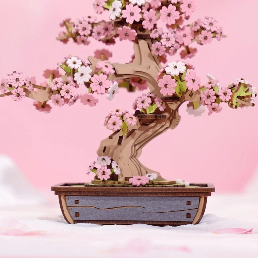 Denne detaljerede bonsai kirsebærblomst efterligner troværdigt de sarte rosa-hvide blomster og den elegante form på et rigtigt træ. Samlingen er intuitiv, alle dele passer præcist sammen, og den færdige model er stabil og robust. Ingen lim eller værktøj nødvendigt – åbn blot æsken og gå i gang.