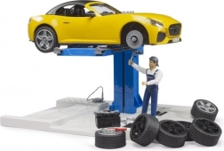 Dette gennemtænkte legesæt giver børn en autentisk oplevelse af et autoserviceværksted. Mekanikeren løfter roadsteren på den højdejusterbare platform, tester bremserne på det tilsluttede udstyr, og resultatet vises på den overskuelige monitor. Takket være den nye konstruktion til hjulskift er ombytning af dæk klaret på et øjeblik – inklusive et komplet sæt reservedæk.