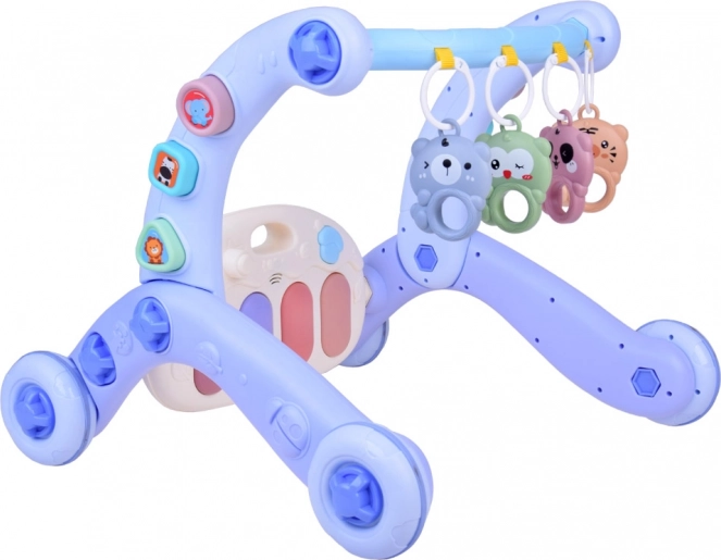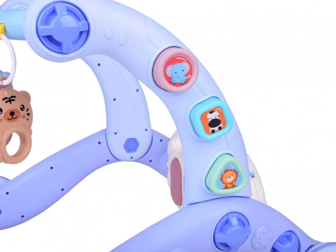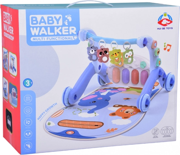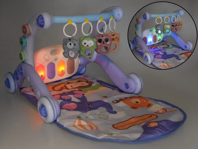 Uddannelsessættet 3-i-1 vokser med dit barn: fra komfortabel leg på den bløde måtte med søde dyr, over udforskning af lyde på klaveret med melodier og lys, til de første skridt med den stabile skubbegåvogn. De farverige hængende legetøj understøtter greb og hånd-øje-koordination, mens formsorteren med pastelfarvede klodser udvikler logik og tålmodighed.