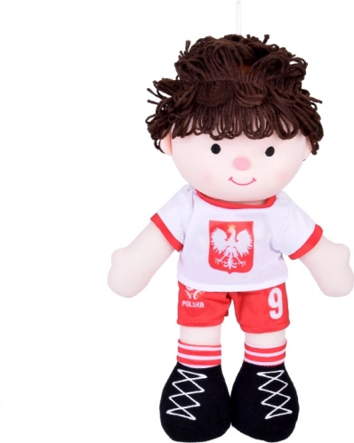 Blød kludedukke fodboldspiller i polsk trøje med nummer 9. Ideel til kram og rolleleg, støtter fantasien og er sikker for børn.