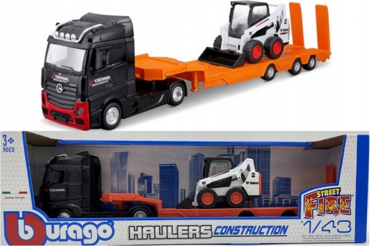 Oplev en detaljeret udformet metal-lastbil fra Bburago. Denne model i skala 1:43 forestiller Mercedes-Benz Actros Gigaspace i et typisk design til byggeformål, suppleret med en Bobcat-læssemaskine. Den er ideel til både små og store entusiaster af køretøjsmodeller.