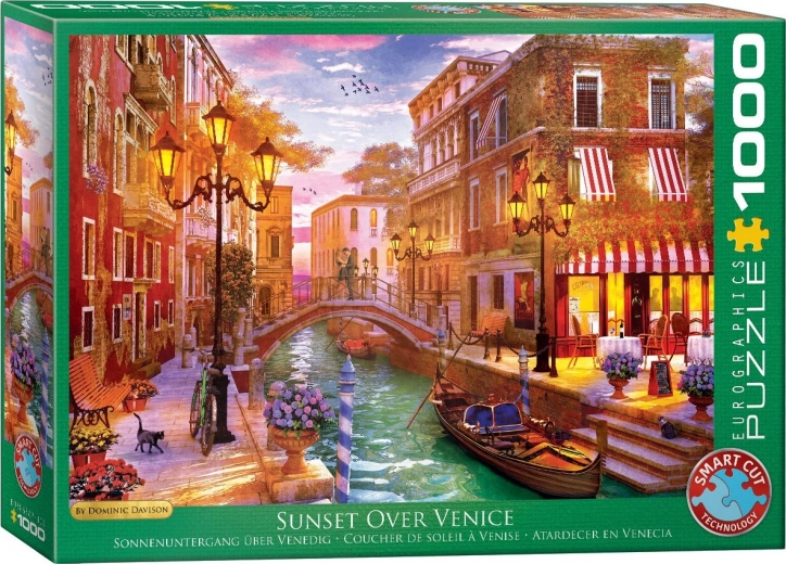 EUROGRAPHICS puslespil 1000 brikker med motiv af solnedgang over Venedig. Ikke-standard stansning, højere sværhedsgrad, mål ca. 67,63 × 48,89 cm.