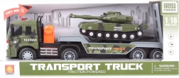 Gør små soldater glade med et realistisk sæt – militærlastbil med tank på batteri, som lyser og udsender lyde. Der medfølger 3 AG13-batterier, så legen kan begynde med det samme efter udpakning. Ideel legetøj til børn fra 3 år.