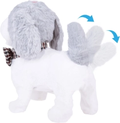 Den søde interaktive hund Charlie i hvid‑grå med elegant butterfly kan gå, gø, pibe og vifte med halen. Den er lavet af blød plysh til kramning, og med den fjernbetjening formet som en pote kan du nemt aktivere lyde og bevægelser. En fantastisk ledsager til børn, der drømmer om deres egen lille kæledyr.