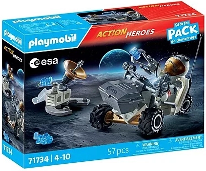 Dette rum-byggesæt bringer børn direkte til centrum for udforskningen af Månen. Den robuste rover med funktionelle hjul, antenner og forlygter suppleres af en astronaut med forgyldt visir på hjelmen og bevægelige led. Børn kan bygge, køre, udforske og kommunikere ved hjælp af satellitteknologi – ideelt til at udvikle fantasi og finmotorik.
