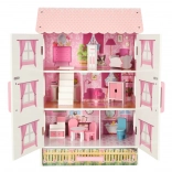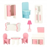 Den solide udførelse i MDF-plader sikrer stabilitet og holdbarhed. De ni pastelfarvede minimøbler kan flyttes frit, så der kan skabes nye historier med dukker, bamser og figurer.