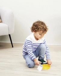 Skraberen gør det nemt at rengøre vinduer eller andre glasoverflader, og rengøringsmiddelmodellen bringer sjov ved at involvere børnene i husarbejdet.