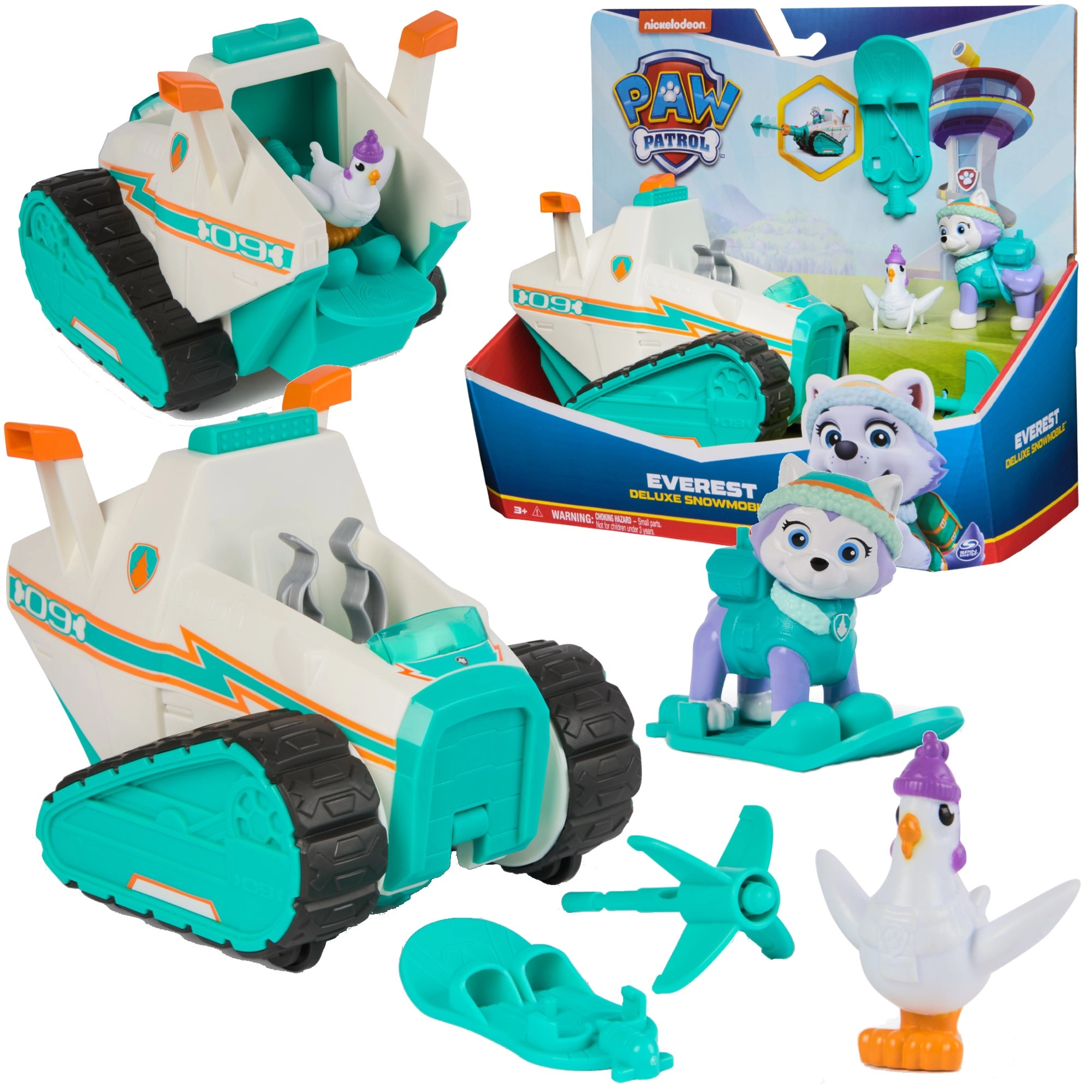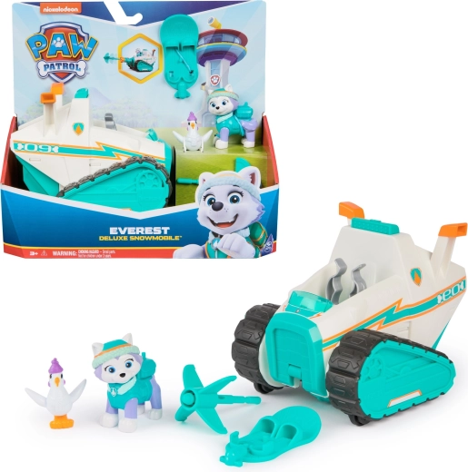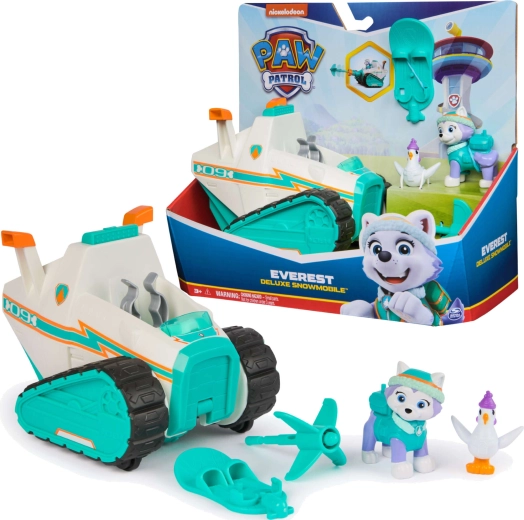 Sættet inkluderer en detaljeret Everest-figur i vinterudstyr, kyllingen Chickaletta og tematiske tilbehør til sneeventyr. Børn kan tage på redningsmissioner, “køre” på bælterne, aktivere affyreren og redde venner – præcis som i serien.