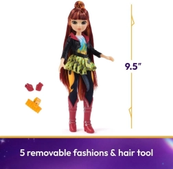 Træd ind i verdenen af Enhjørning Akademiet med denne 23 cm høje dukke, inspireret af animationsserien og den elskede bog. Dukken Valentina er omhyggeligt detaljeret, og hendes sjove personlighed afspejler sig i hendes røde, orange og gule hår, som kan styles med de medfølgende tilbehør. Hun bærer en stilfuld ridetragt med en sort ridejakke, ternet nederdel, rytterbukser mærket med Element sa Fuego, røde støvler med metalnitter og ridehandsker.