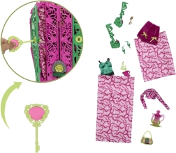 Åbn skabsdørene, saml de tre dele af talismanen, og skub den opad, så MONSTER HIGH-dukken “træder frem”. Mere end 19 overraskelser giver glæde ved unboxing og nye lege-scenarier.
