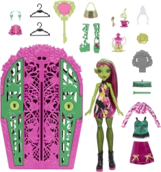 Træd ind i MONSTER HIGHs mørkt fortryllende univers og opdag sættet Ultimate Secrets – Havens Hemmeligheder med Venus McFlytrap-dukken. Leg detektiv: brug den “magiske” nøgle med lup til at finde symboler på kortet og lås skjulte hemmeligheder op trin for trin. Hver afsløring giver nye stykker tøj og accessories til en uhyggeligt elegant havesoaré.