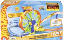 Oplev et adrenalinsus med HOT WHEELS racer turbo‑loop. Drej håndsvinget for at spinne boosteren, som skyder en metalbil i skala 1:64 gennem loopet, de skarpe sving og den spændende crash‑zone – og tilbage til start igen for endeløs underholdning.