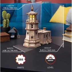 Denne detaljerede træreproduktion af det berømte fyrtårn i Minnesota med ottekantet tårn og opsynsmandens hus udmærker sig ved kvalitetsmateriale, lasergravering og gennemtænkt mekanik. Drejekuppel, åbningsbar dør med gummimekanisme og gardiner i vinduerne giver modellen autentisk karakter. Det varme LED-lys skaber en behagelig atmosfære i soveværelse, børneværelse og på kontoret.