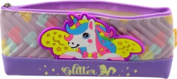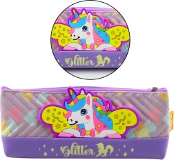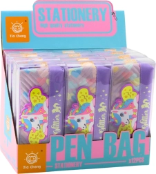Lilla penalhus med enhjørningsmotiv, ideelt til opbevaring af skoleartikler. Blødt, holdbart og sikkert materiale opfylder CE og EN71 standarder.