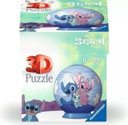 3D Puzzle Ball fra Ravensburger byder på præcise plastbrikker, der passer fejlfrit sammen takket være den specielle buede form. Når den er samlet, får du en solid og holdbar kugle med de populære figurer Stitch og Angel, helt uden behov for lim.