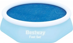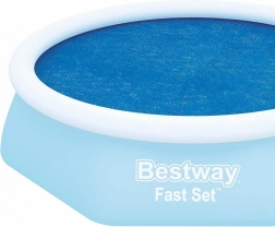 Den solare overtræksdug er en enkel og effektiv løsning til at holde vandet rent i fritstående BESTWAY Fast Set pools med en diameter på 244 cm. Den flyder direkte på overfladen, hvorved den forhindrer blade, insekter og andet snavs i at komme i vandet, og fungerer samtidig som termisk isolering – vandet forbliver behageligt varmt længere.