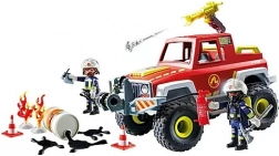 Ryk ud med PLAYMOBILs terrængående brandbil, som klarer ujævnt terræn. Den har plads til to figurer, en funktionsdygtig vandkanon, spil med reb, a aftageligt tag og opbevaringsplads til udstyr. Inkluderer også silikone-oljepletter, der hæfter på glatte overflader og nemt kan fjernes igen til mere leg.