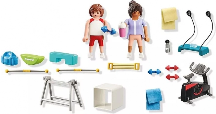 Med PLAYMOBIL My Life Fitness træning kan børn opleve hver dag i bevægelsens tegn. De kan bruge motionscykel, stepper med justerbare stropper, håndvægte og barrer, som figurerne virkelig kan holde. Der medfølger også vandflaske, håndklæde og boombox for den rette træningsstemning.