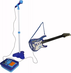Guitaren leveres med en rem, som gør det behageligt at bære den som en ægte rocker. Det justerbare mikrofonstativ kan tilpasses dit barns højde.
