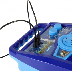 Mikrofonen er højdejusterbar, og alle komponenter tilsluttes forstærkeren med kabler for øget autenticitet.
