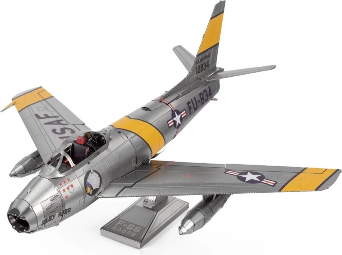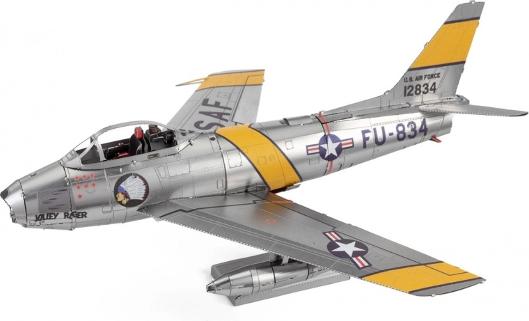 Saml 3D-puslespillet F-86 Sabre fra Metal Earth, en fascinerende model med autenticitet og detaljer. Et fremragende samlerobjekt med præcis gravering.
