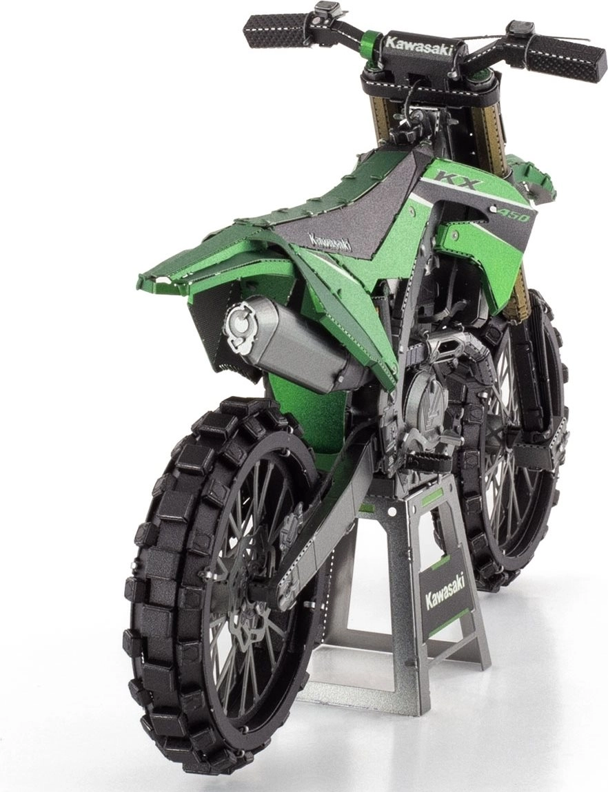 Metalpuslespillet tilbyder et realistisk udseende takket være detaljeret lasergravering, som gør modellen Kawasaki KX450 til et iøjnefaldende udstillingsstykke.