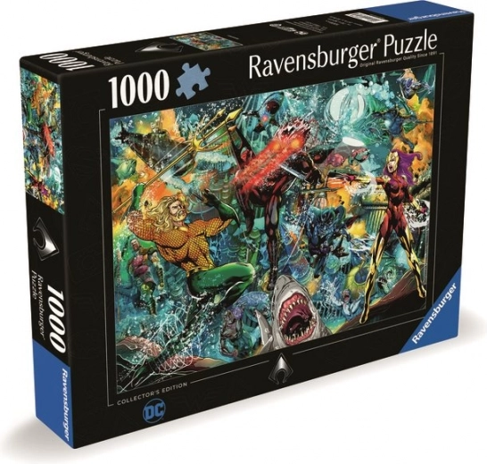 RAVENSBURGER Aquaman puslespil med 1000 brikker. Præcis udstansning, fyldige farver og størrelse efter samling ca. 70 × 50 cm. Et fremragende valg til både DC-fans og puslespilsentusiaster.