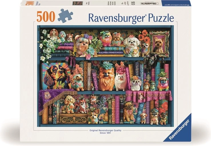 Nyd afslapning med et kvalitets‑puslespil fra RAVENSBURGER med motiv af søde porcelænsmops. Et fremragende valg for både hunde- og puslespilselskere – 500 brikker, præcis udstansning og fremragende trykkvalitet for skarpe farver og pusleglæde.