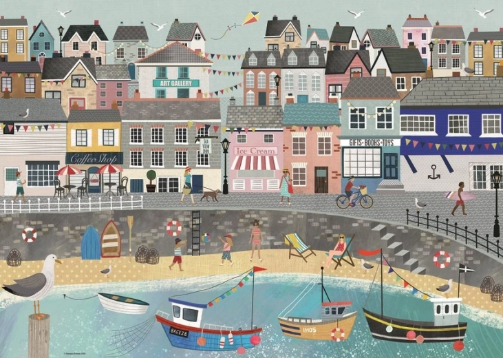 Nyd afslapning ved bordet med et kvalitets­puslespil fra RAVENSBURGER. Motivet af en rolig kysthavn og 1000 brikker giver en behagelig udfordring, præcis udstansning og en silkeblød overflade for komfortabel lægning.