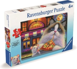 Puslespillet 'Happy Cat Pizza' fra Ravensburger er en ideel måde at underholde børn med at lægge brikker. Den samlede størrelse er ca. 26 x 18 cm og garanterer sjov for små elskere af dyr og lækker mad. Den høje kvalitet og de robuste brikker sikrer, at puslespillet er let at lægge og nemt for børn at håndtere.