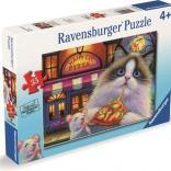 Fantastisk puslespil for små dyre- og madelskere! Ravensburger tilbyder et muntert motiv med en kat og pizza bestående af 35 brikker til børn fra 4 år, som støtter udviklingen af finmotorik og tålmodighed.