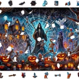 WOODEN CITY træpuslespil med motiv af Halloween Dødens Herre er en sjov udfordring for elskere af mere krævende puslespil. Takket være de unikke brikformer i form af dyr og glatte kanter er det et produkt af fremragende kvalitet.