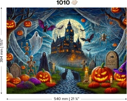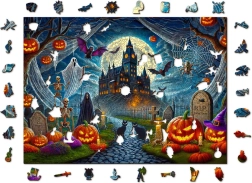 Træpuslespillet WOODEN CITY med motiv af et halloween-slot giver en unik læggeoplevelse. Hver brik er præcist laserskåret, nogle af dem har særlige dyreformer og kan stå selv som små figurer. De varierende former gør lægningen mere krævende – og endnu sjovere.