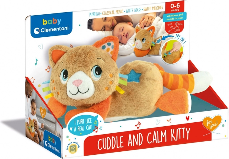 Denne bløde plys-kat fra CLEMENTONI BABY er designet til at give børn trøst og hjælpe dem med at falde i søvn. Vibrationerne efterligner realistisk en kats spinden og fremmer afslapning, mens et udvalg af beroligende lyde (klassisk musik, hvid støj og søde melodier) skaber en behagelig søvnstemning.