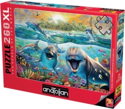 Oplev havets skønhed med dette imponerende puslespil, der viser smilende delfiner i deres naturlige miljø. At lægge puslespillet stimulerer ikke kun sindet, men skaber også et fantastisk dekorativt element til dit hjem.