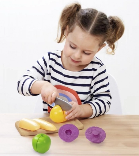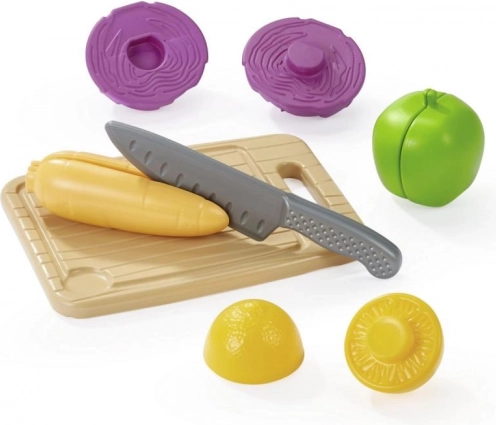 Mestring af kunsten at skære og lave mad med dette attraktive og farverige legetøjsæt. Med forskelligt og spraglet udvalg af plastgrøntsager kan børn skabe utallige lege og historier, udvikle deres kreativitet og finmotorik. Sættet inkluderer bræt, kniv og forskellige typer frugter og grøntsager såsom æble, majs og kål. Støt børns fantasi og lær dem grundlæggende køkkenfærdigheder.