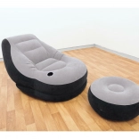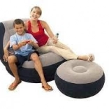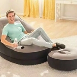 Komfortabel oppustelig lænestol med fodskammel, ideel til både indendørs og udendørs brug. Giver dig mulighed for at nyde afslapningsstunder med maksimal komfort.