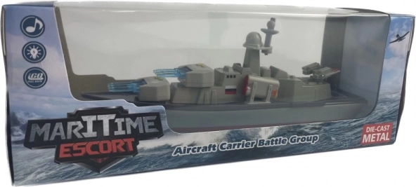 Metal-slagskrydser med lys og lyd. Detaljeret krigsskib til leg og samling, kvalitets die-cast udførelse og gaveæske.