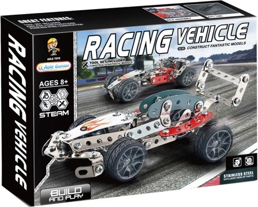 Byg din egen racervogn af et solidt metalbyggesæt med 146 dele. Dele af metal og plast forbindes med skruer og møtrikker, så byggeriet er let, sjovt og samtidig en udfordring for både små og store konstruktører.
