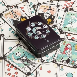 Spillekort med designs inspireret af filmen 'The Nightmare Before Christmas' skaber nostalgi og sjov.