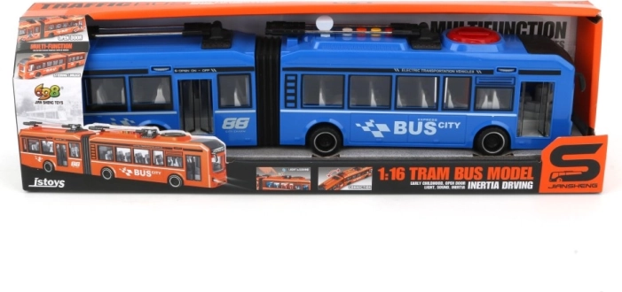 En stilfuld model af en trolleybus i skala 1:16 vil glæde alle små fans af offentlig bytransport. Den byder på en livlig blå design, ideel størrelse til leg indendørs og støtter udvikling af fantasi og forestillingsevne.