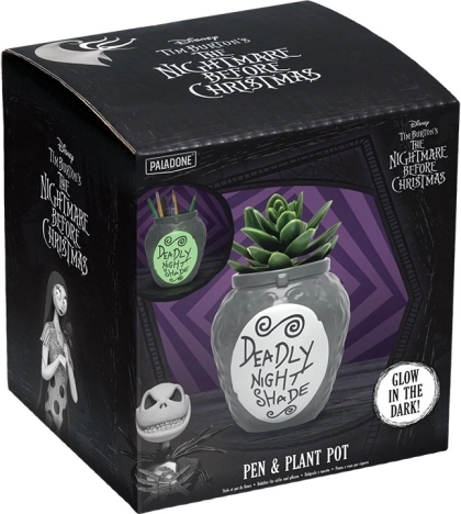 Vis din kærlighed til Tim Burtons univers og hold samtidig orden på bordet. Denne dekorative penneholder med matchende pen i Nightmare Before Christmas-licens kombinerer funktionalitet med et ikonisk design. Den stilfulde beholder i “Deadly Night Shade”-look giver dit arbejdsområde en unik karakter.