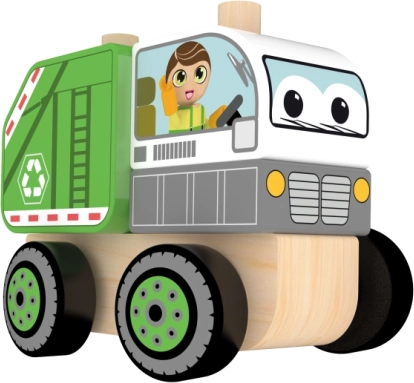 Byg din egen lille bil af naturligt træ – det er nok at stable de farvede klodser i den rigtige rækkefølge på to pinde på det solide chassis med hjul. Legetøjet støtter på en nænsom måde finmotorik, træner greb og udvikler hånd-øje-koordination.